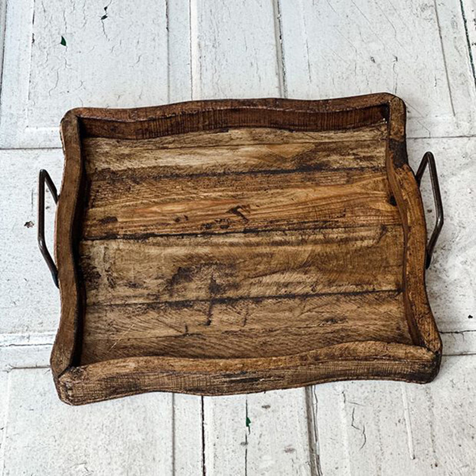 ถาดไม้สไตล์รัสติกพร้อมที่จับทองเหลืองถาดไม้โบราณพร้อมที่จับทองเหลืองถาดเสิร์ฟตกแต่ง