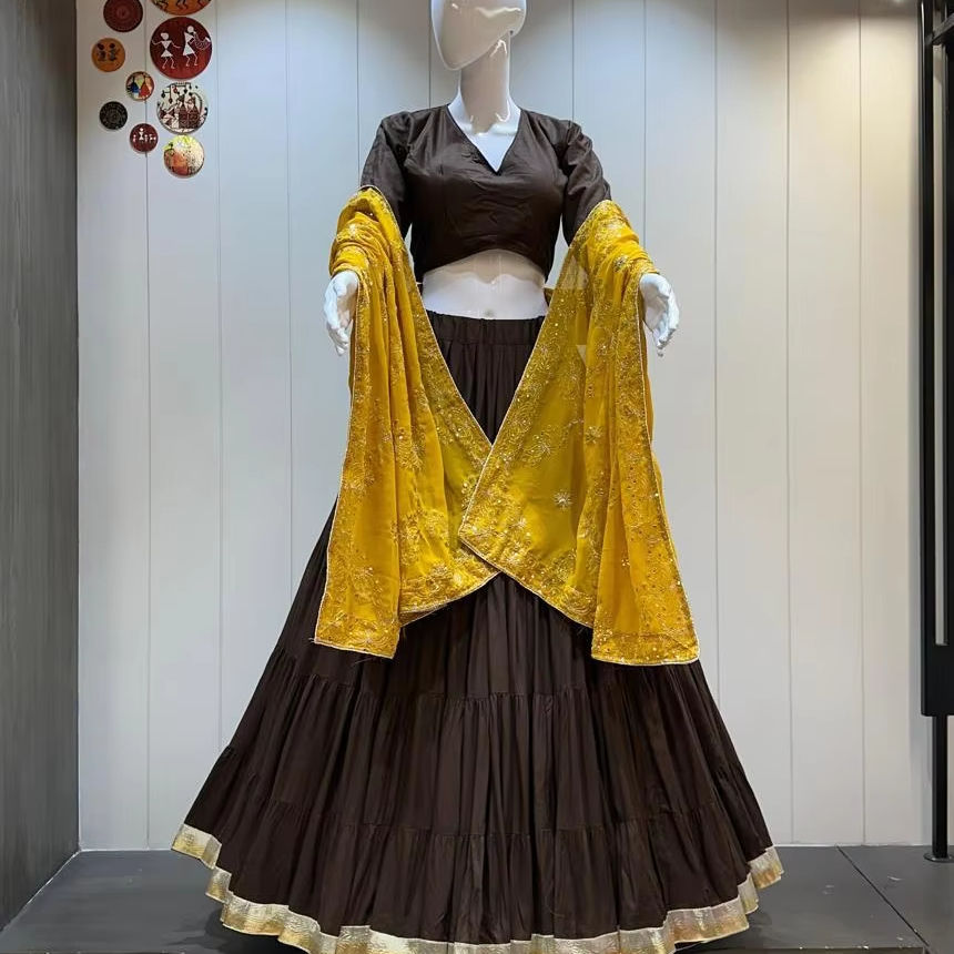 Chaniya Choli เสื้อผ้าสำหรับผู้หญิงสีสันสดใสปักลายสำหรับงานเทศกาลดีไซน์หรูหรา