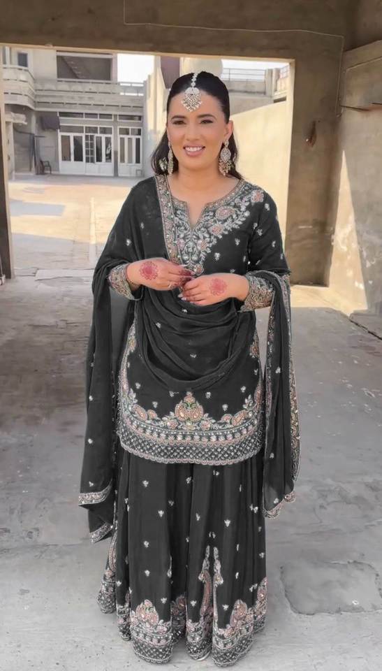 ชุดสูทชาราสำหรับผู้หญิงชุดปาร์ตี้ปากีสถานและอินเดียชุดปักซักได้จากอินเดีย