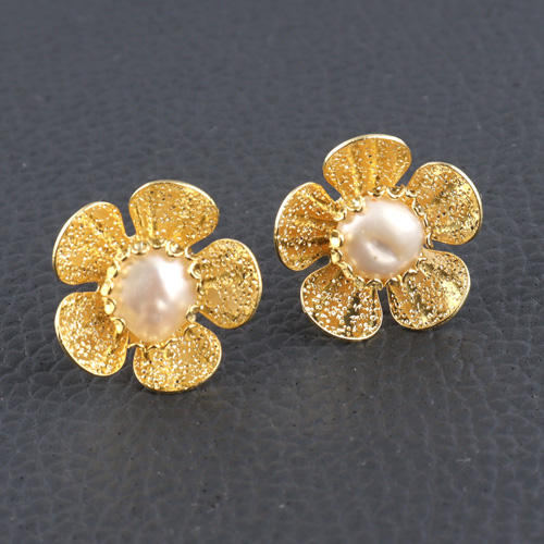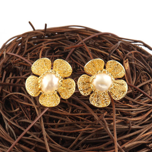ต่างหูดีไซน์สวยหรูลายดอกไม้ไข่มุกน้ำจืดขนาดเล็ก,ตุ้มหูหมุดเล็กๆสีทองมีลวดลายแบบพื้นผิวเหมาะสำหรับเป็นของขวัญ