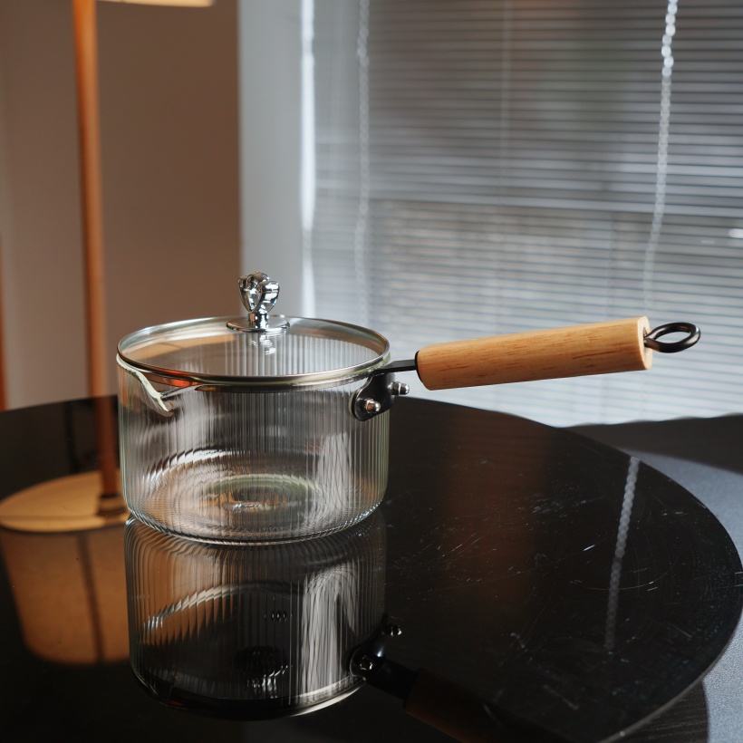 ชุดหม้อซุปทำจากแก้วบอโรซิลิเกตด้ามสองชั้นหรูหราฝาหม้อทำจากไม้สำหรับทำอาหารในครัวทำอาหารนม
