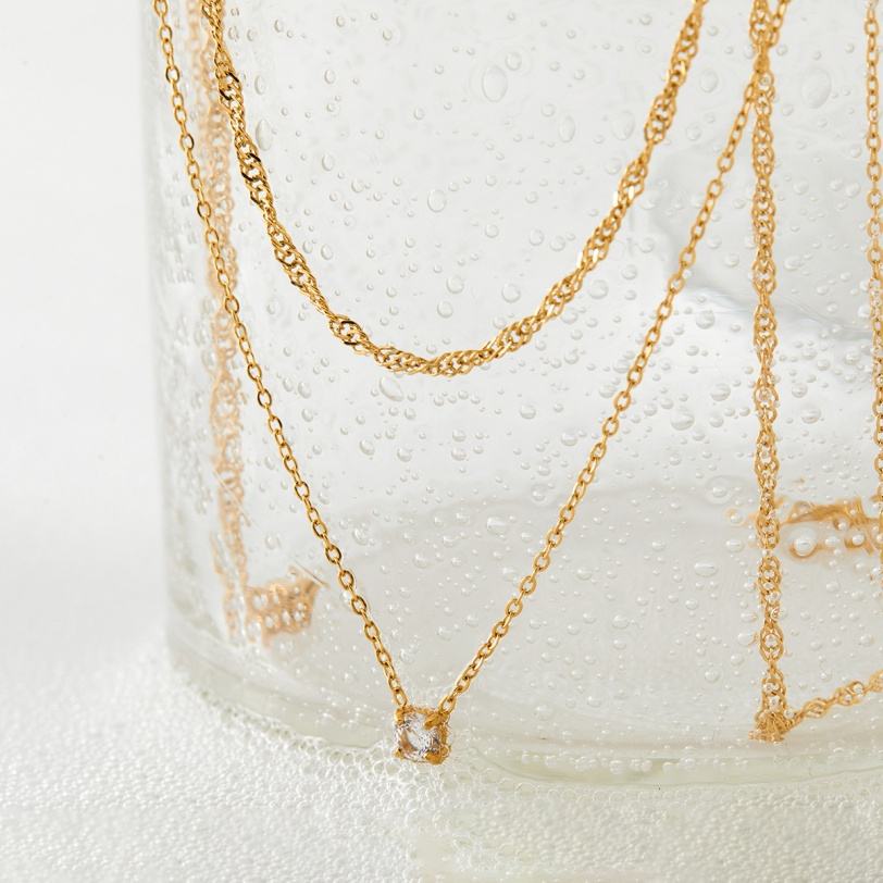 สร้อยคอจี้เพทายสองชั้น ดีไซน์หรูหราสำหรับผู้หญิง ทำจากสแตนเลสสตีลชุบเคลือบอย่างดี ทันสมัย สีสันคงทน