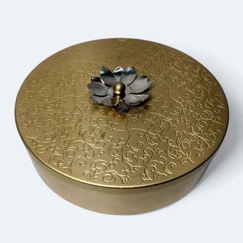 กล่องใส่เครื่องเทศและผลไม้แห้งโลหะทรงกลมลายนูนสองชั้นหรูหราพร้อมช่องใส่ของที่ผลิตในอินเดีย