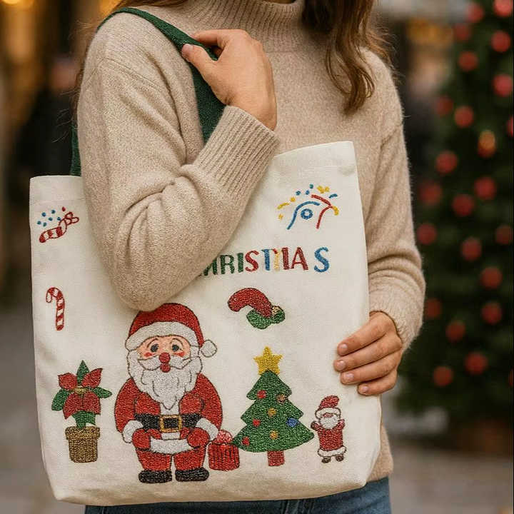กระเป๋าผ้าแคนวาส ทนทาน สวยงาม ปักลายได้ตามต้องการ ปิดด้วยซิป แฟชั่นสำหรับผู้หญิง กระเป๋าคริสต์มาส สีสันสดใส หลายสไตล์ ผลิตในอินเดีย
