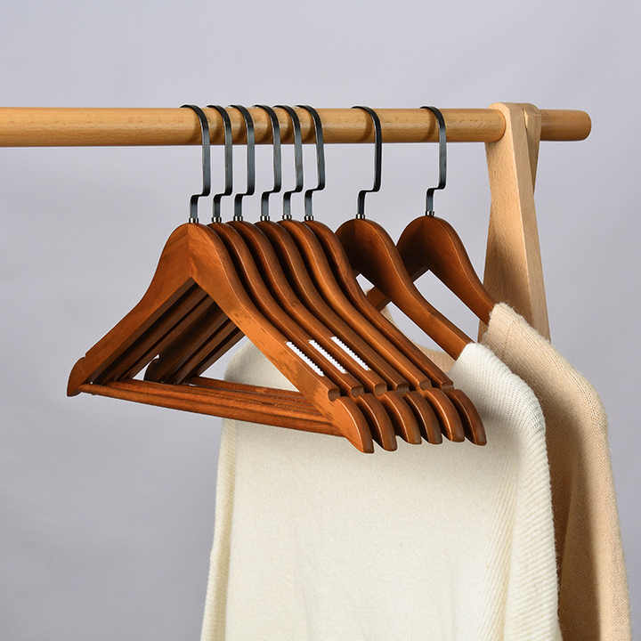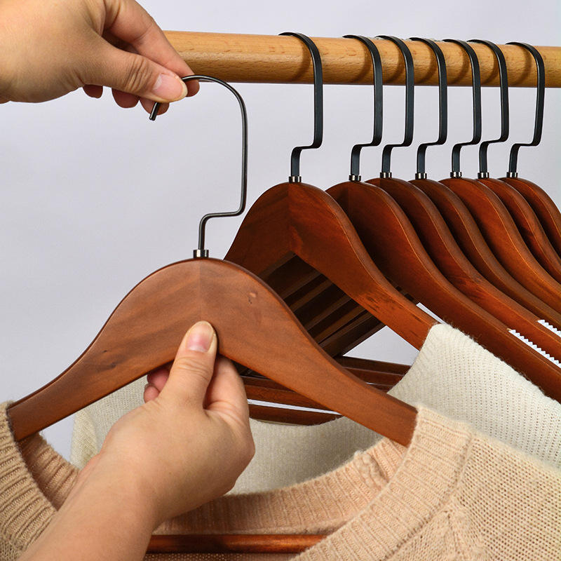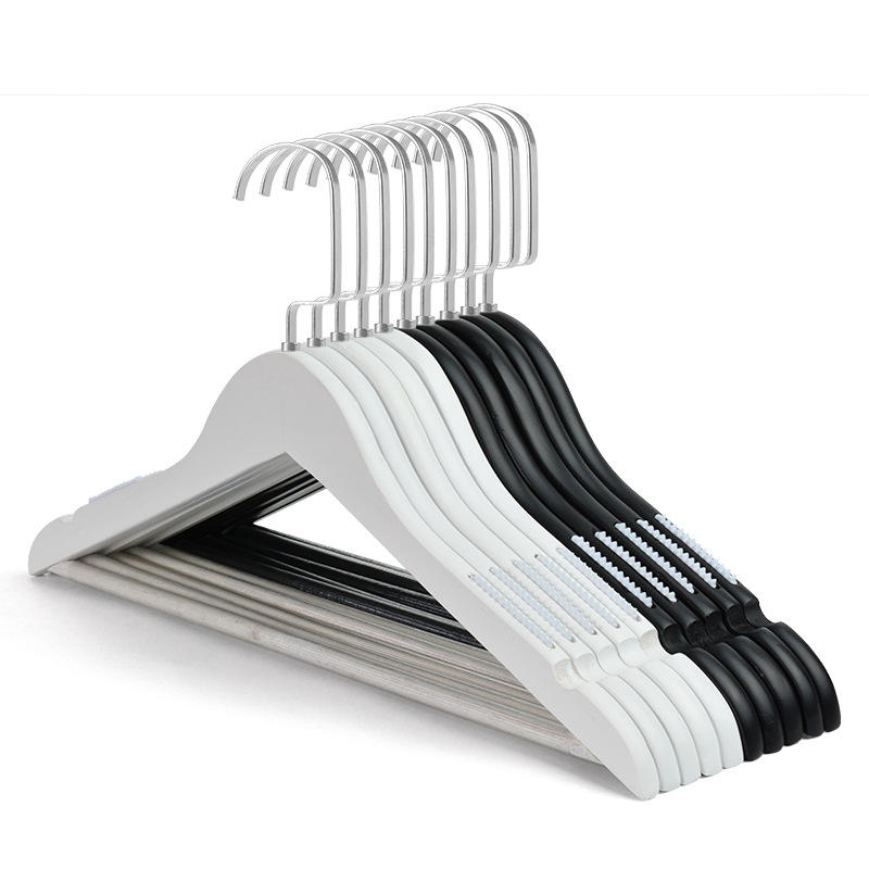 ไม้แขวนเสื้อสีดำ P66ทนทานหรูหราสำหรับใช้ในบ้านเสื้อผ้าร้านค้ากำหนดโลโก้ได้เอง