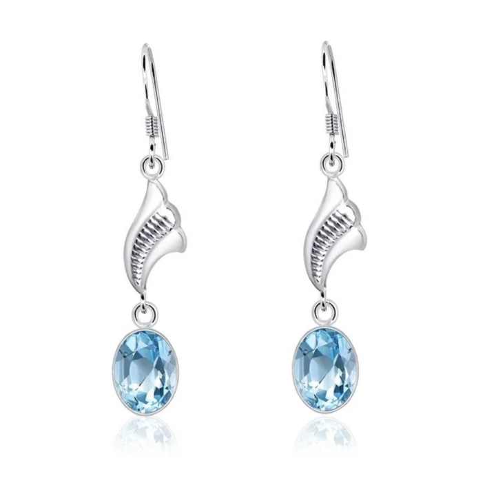 ต่างหูเงินแท้ 925 ประดับพลอยบลูโทแพซธรรมชาติ งานแฮนด์เมด ดีไซน์สวยหรู