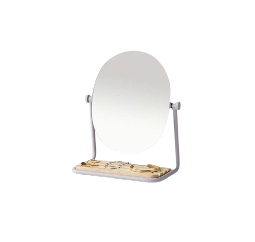 กระจกโต๊ะเครื่องแป้งโลหะแบบเคลื่อนย้ายได้ง่ายหรูหราพร้อมถาดโชว์อุปกรณ์ตกแต่งเครื่องสำอาง