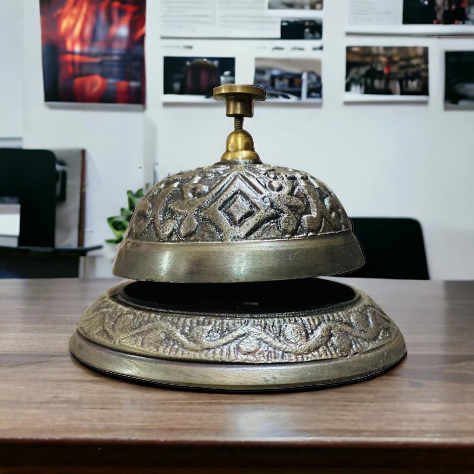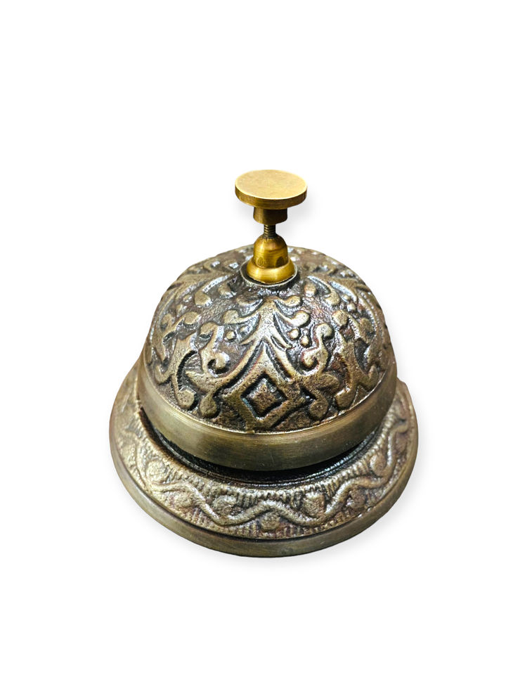 กระดิ่งตั้งโต๊ะอะลูมิเนียมลายนูนสวยงาม ดีไซน์ตกแต่งอย่างมีศิลปะ น้ำหนักเบา เหมาะสำหรับโต๊ะทำงาน เคาน์เตอร์สำนักงาน แผนกต้อนรับ และตกแต่งบ้าน