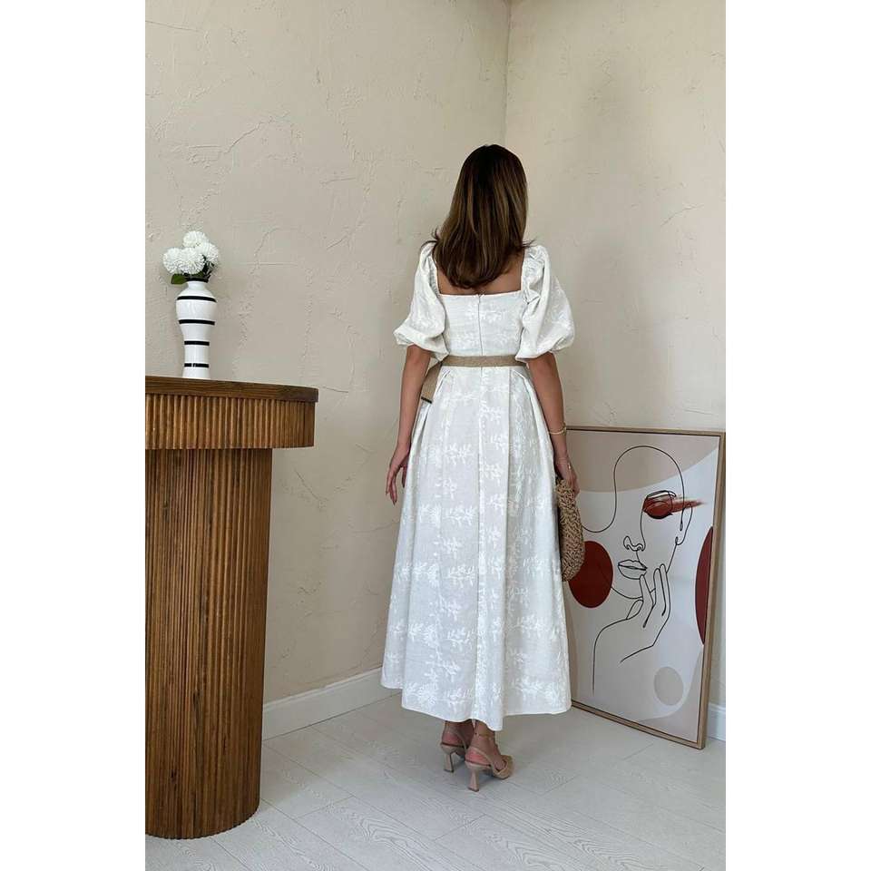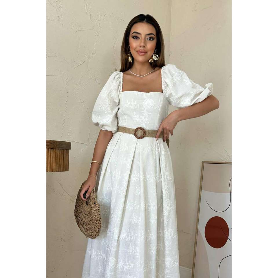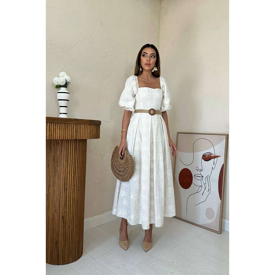 ชุดเดรสทรงเอปักลายหรูหรา คอเหลี่ยม แขนทรงบอลลูน เอวเข้ารูป ผ้าทอเนื้อระบายอากาศ ใส่ได้ทุกวัน