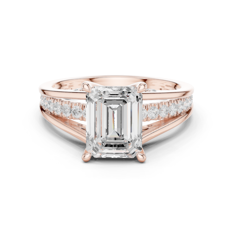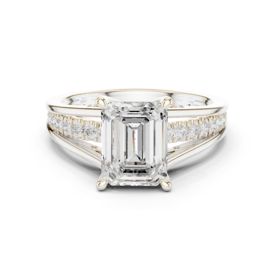 แหวนเพชรทรงเหลี่ยมมรกตทองคำขาว 9 กะรัต ดีไซน์หรูหรา พร้อมรายละเอียดประดับเพชรแบบพาเว่ที่ด้านข้าง