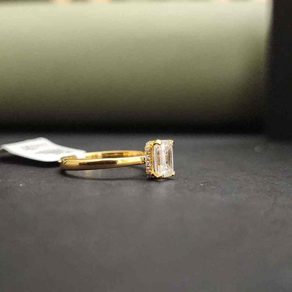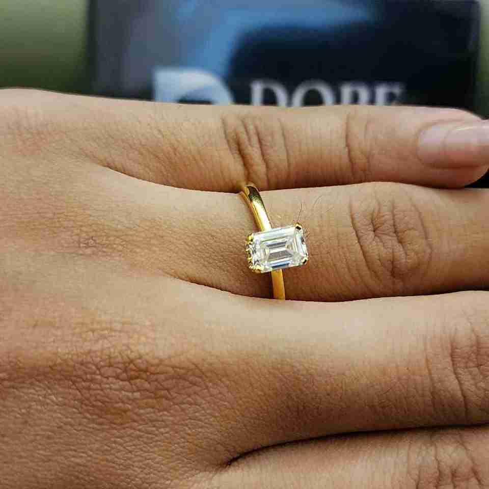 แหวนเพชรโมอิสสีทองสีเหลืองมรกตหรูหรา18KT สีทองที่ได้รับการรับรองจาก dope PRONG สำหรับการหมั้น