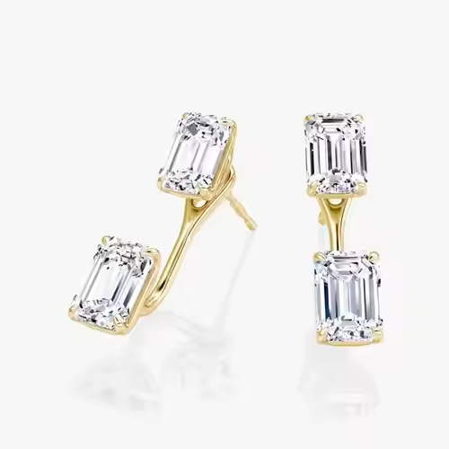 ต่างหูเพชรที่ปลูกในห้องปฏิบัติการทองคำ10K ทรงมรกตหรูหราเครื่องประดับใส่สบายในชีวิตประจำวันสำหรับงานปาร์ตี้เจิดจรัส