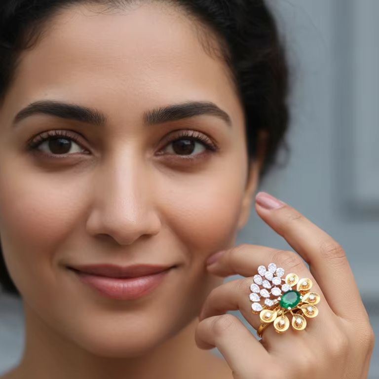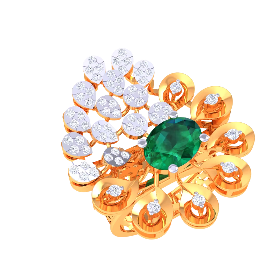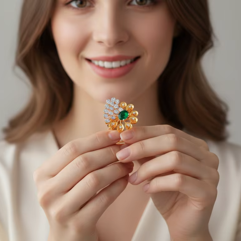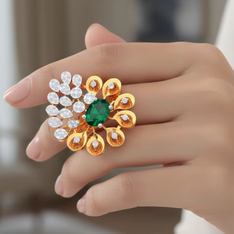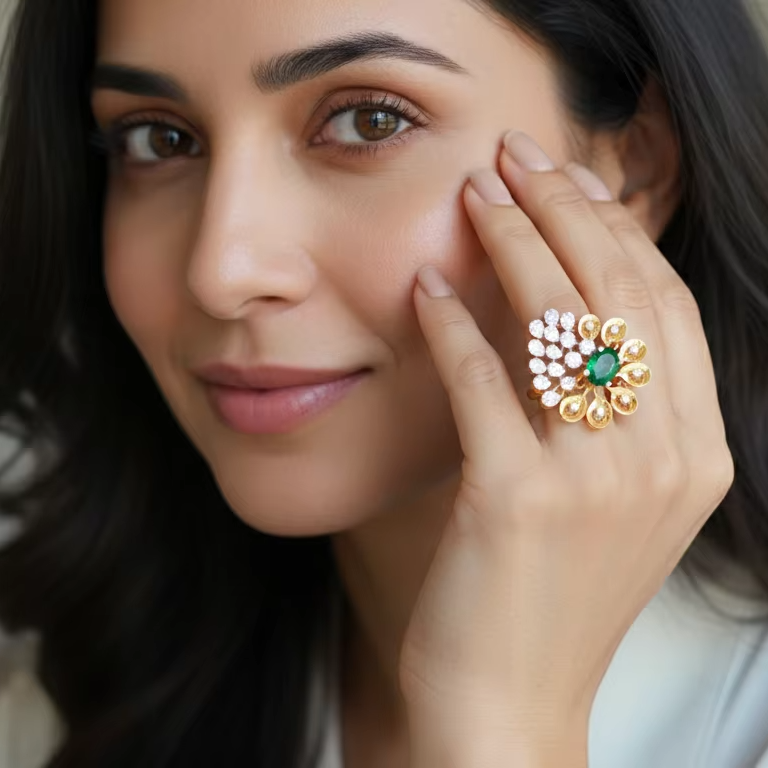 แหวนมรกตทรงโอวัลขนาดใหญ่ ดีไซน์หรูหรา ชุบทอง เหมาะสำหรับงานแต่งงานและงานหมั้น