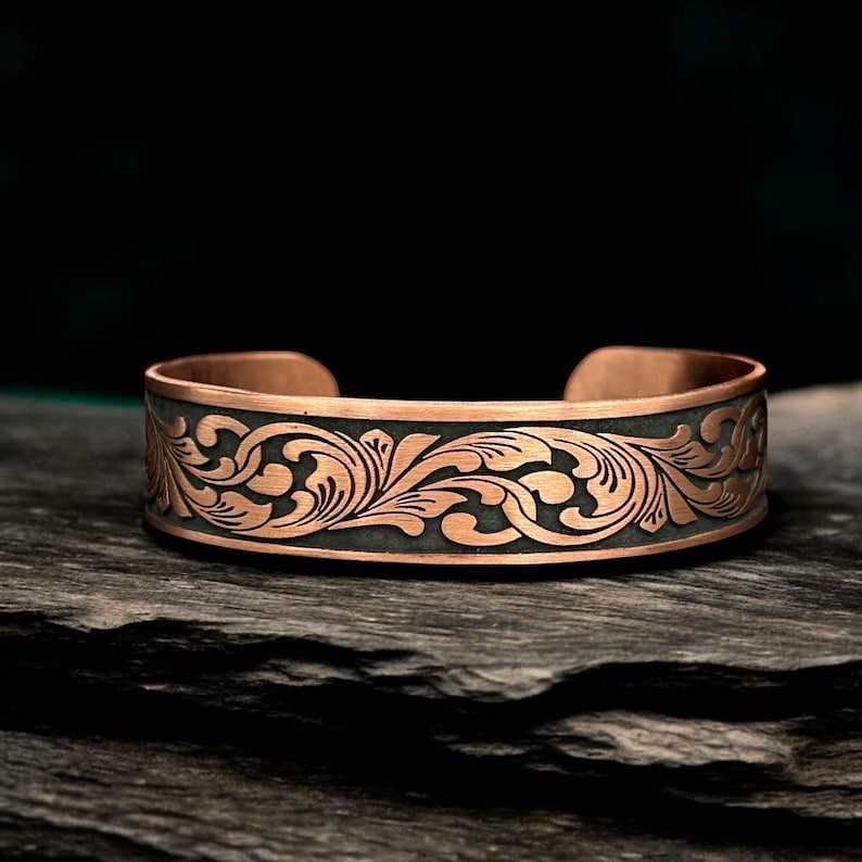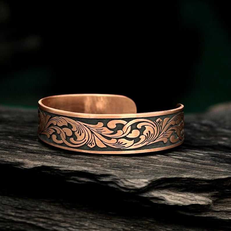 กำไลข้อมือทองแดงลายสลักแบบเรียบหรูสำหรับผู้ชาย OEM สำหรับผู้ป่วยโรคข้ออักเสบ ทองแดงแท้พร้อมเทคนิคการขัดเงา งานฝีมือโลหะ