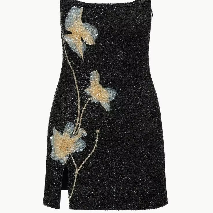 ชุดราตรีหรูหรา ชุดค็อกเทลแบบเรียบร้อย ผ่าขาสูงด้านขวา ผ้าซาติน ประดับเลื่อม ลูกปัด ปักลาย ประดับด้วยลูกปัดหรูหรา สำหรับงานปาร์ตี้ งานแต่งงาน ทรงตรง