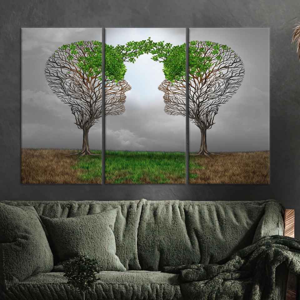 ภาพพิมพ์ลายต้นไม้แบบหน้าต่อหน้าที่สวยงามบนผืนผ้าใบสำหรับตกแต่งผนัง ชุดผ้าใบ 3 ชิ้น