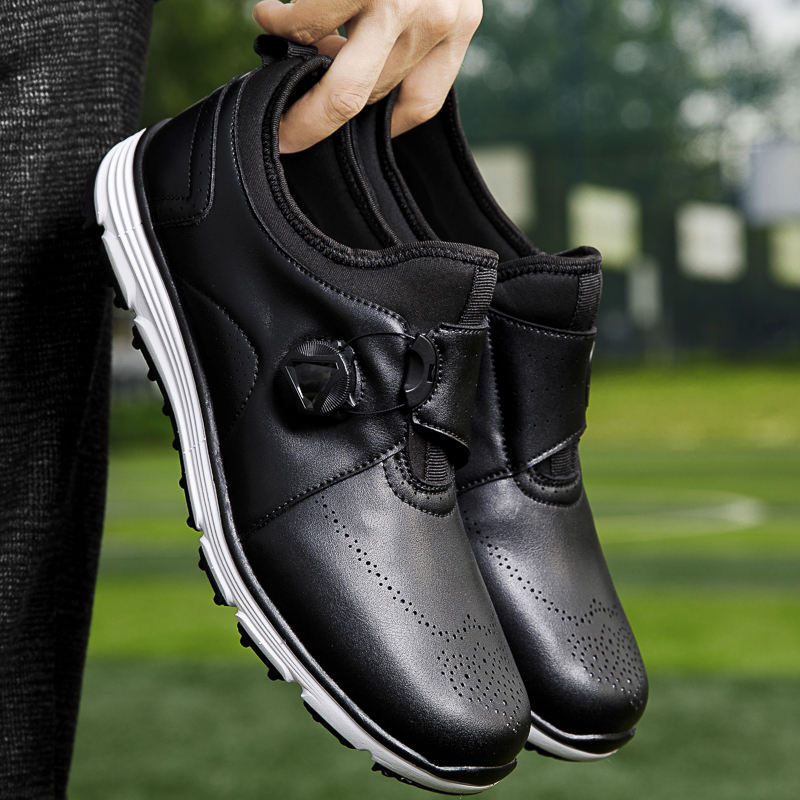 รองเท้ากอล์ฟแฟชั่นหรูหราพร้อมเชือกผูกรองเท้าแบบหมุนได้ ด้ามจับที่แข็งแกร่ง ดูดซับแรงกระแทก รองเท้ากอล์ฟสำหรับฝึกซ้อมแบบไม่ลื่นระบายอากาศได้