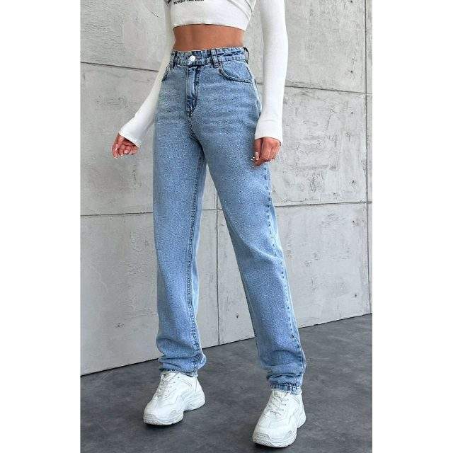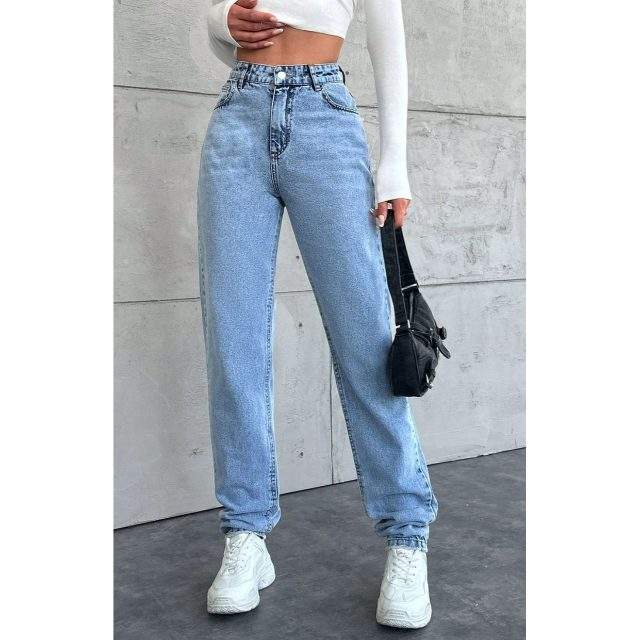 กางเกงยีนส์เดนิมสีฟ้าอ่อนทรงขากว้างสำหรับผู้หญิง ดีไซน์หรูหราทันสมัย เอวสูง ทรงหลวม ผ้าเนื้อนุ่มยืดหยุ่น เป็นมิตรต่อสิ่งแวดล้อม ทนทาน มีหลายขนาด