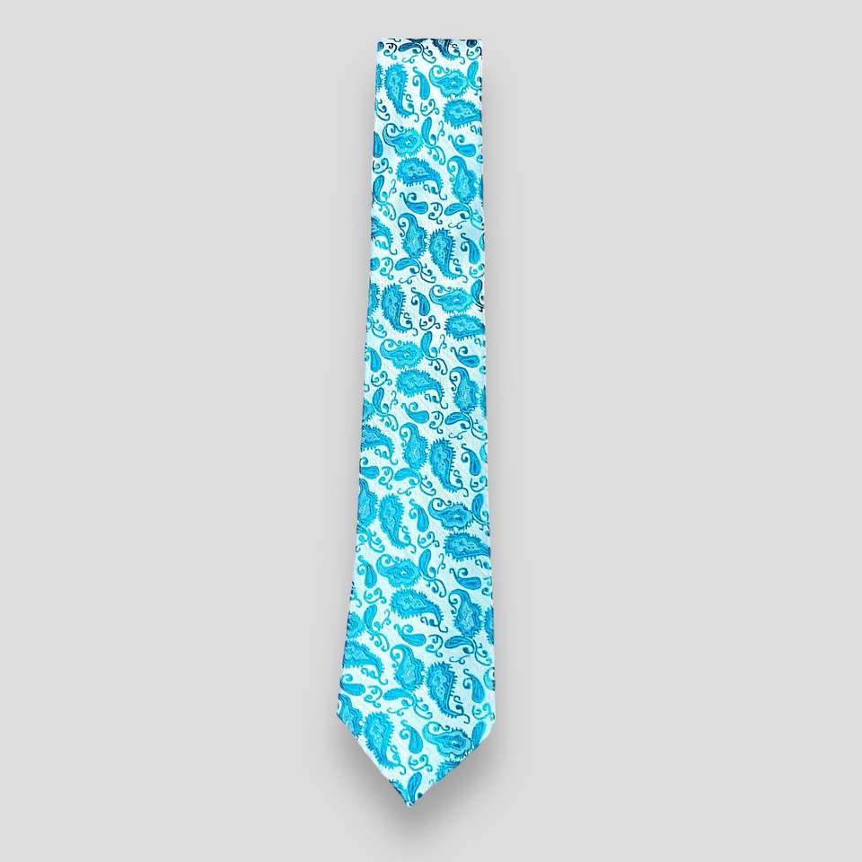 เนคไทผ้าไหมดีไซน์ลาย Paisley สีน้ำเงินสวยสง่าเนคไททันสมัย