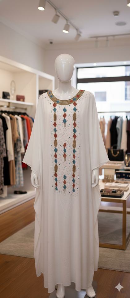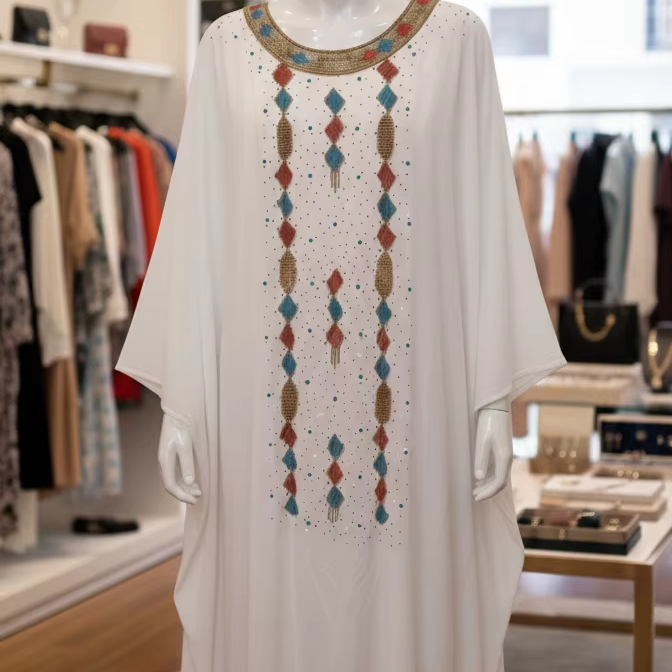 ชุดเดรสอาบายา มุสลิม ประดับลูกปัด แบบคาฟตัน