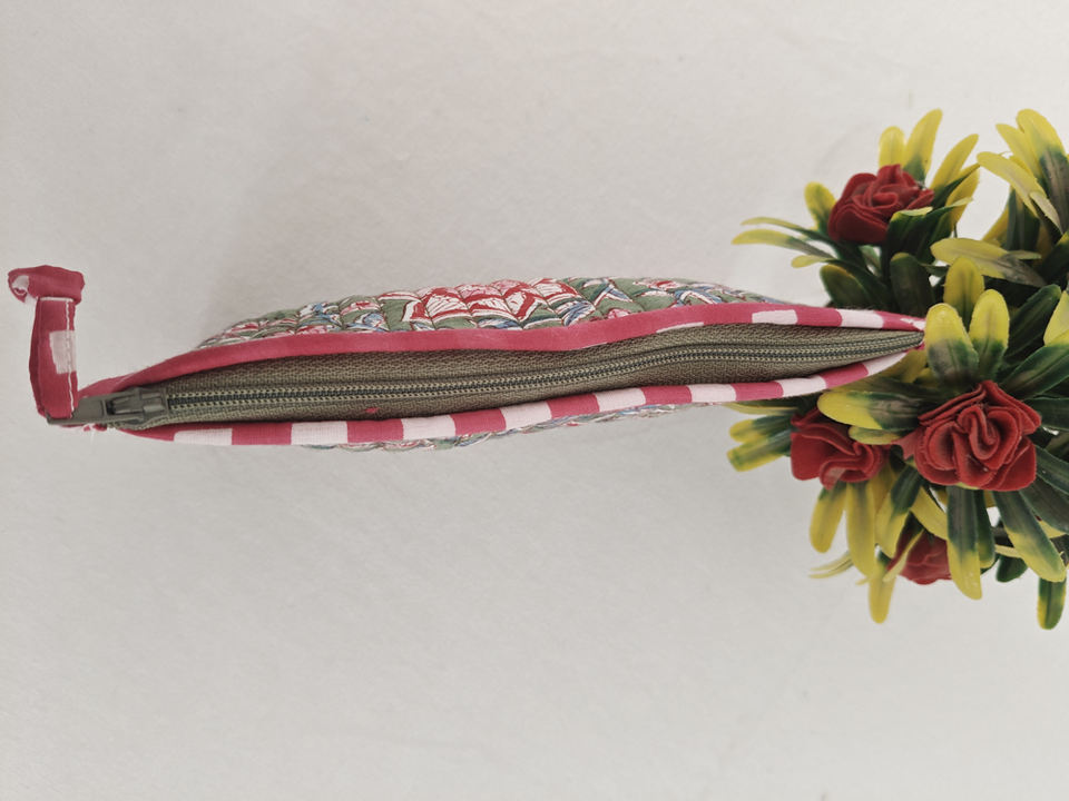 กระเป๋าผ้าฝ้ายลายดอกไม้สุดหรูกระเป๋าใส่เหรียญทำด้วยมือสีขาวมีซิปปิดทำจากผ้าฝ้ายออร์แกนิค