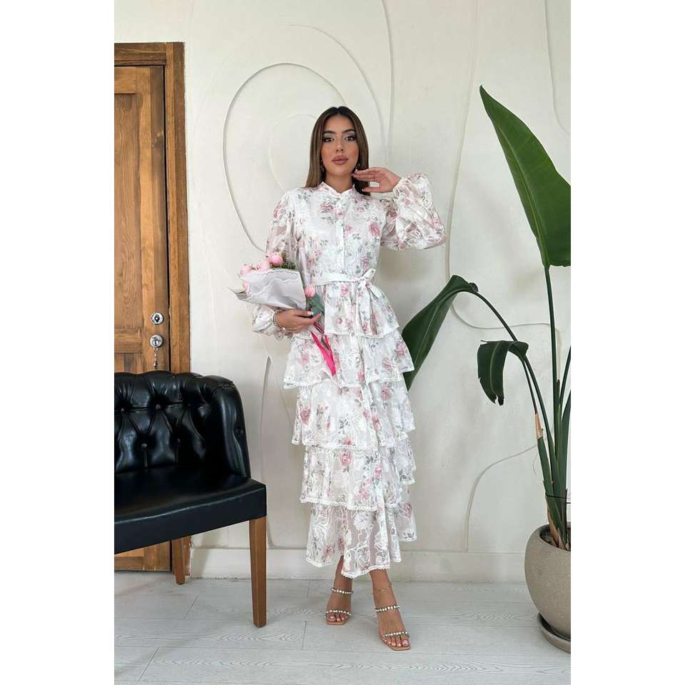 ชุดเดรสชีฟองลายดอกไม้หรูหรา ทรงเอไลน์ เอวทรงเอ็มไพร์ แขนยาวผ้าบาง ชุดราตรี