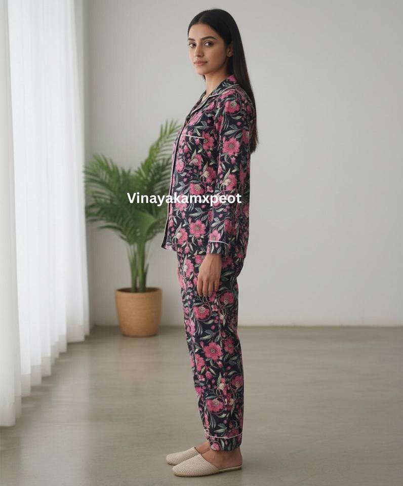 ชุดนอนผ้าฝ้ายลายดอกไม้สุดหรู สีชมพูกรมท่า สำหรับผู้หญิง ระบายอากาศได้ดี แห้งเร็ว เหมาะสำหรับฤดูร้อน คุณภาพสูง ชุดนอนสองชิ้น