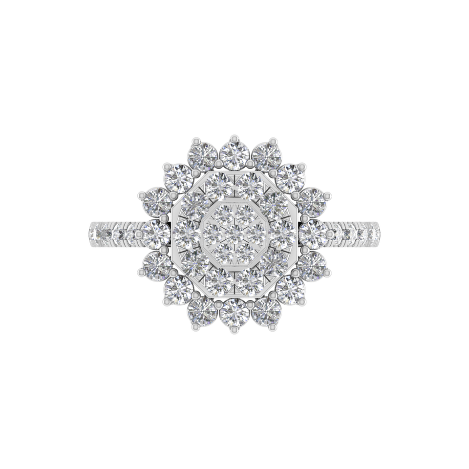 Elegant Floral Design 14k Real Gold Double Halo Engagement Ring Natural Stone Custom Jewelry for Women Factory Made India 2025