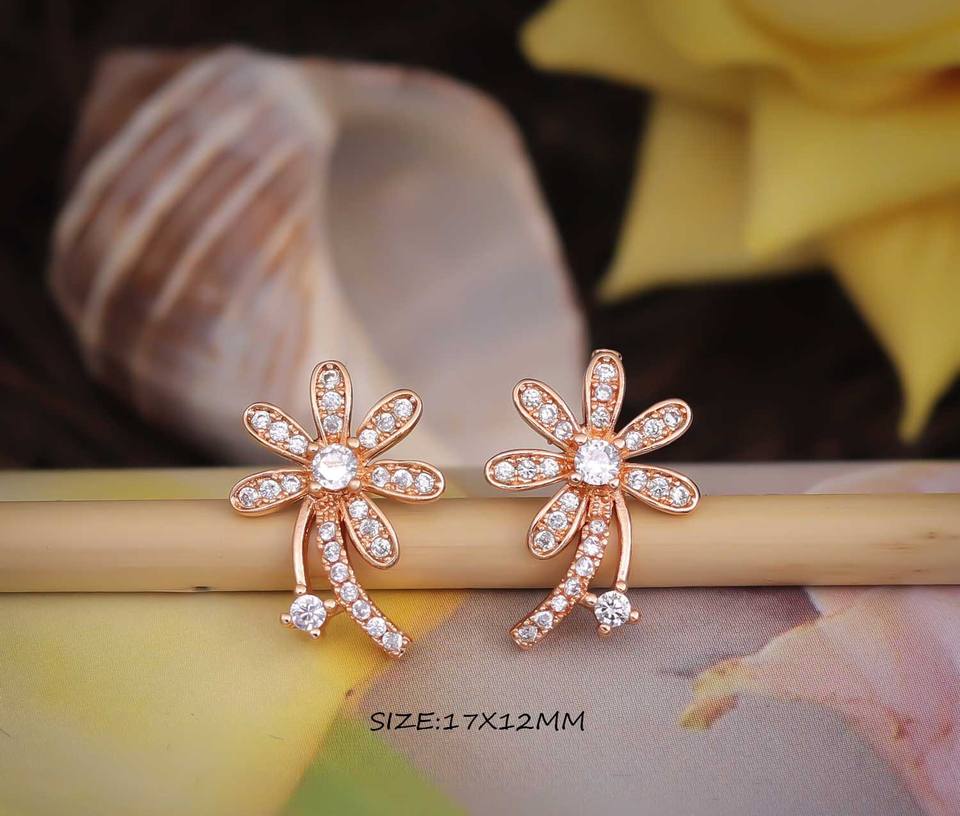 ต่างหูสตั๊ดลายดอกไม้หรูหราสำหรับผู้หญิง ประดับเพชรซิร์คอน ชุบทองบนสแตนเลสสตีล เครื่องประดับแฟชั่น