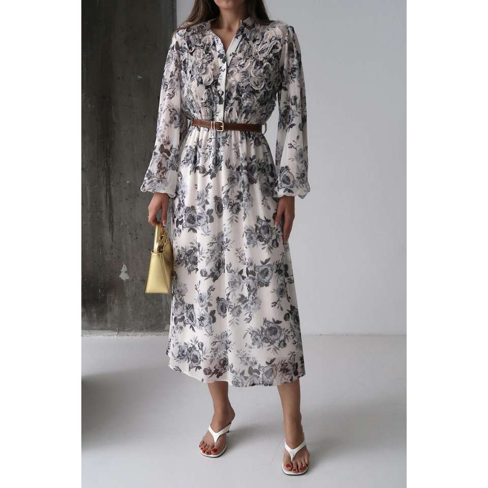 เดรสผ้าทอลายดอกไม้สุดหรู คอปก ทรงเข้ารูปช่วงเอว เหมาะสำหรับใส่ในชีวิตประจำวัน ระบายอากาศได้ดี สไตล์เดรสเชิ้ต