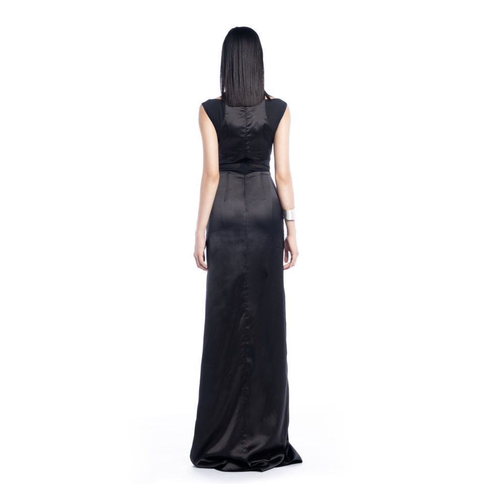 ชุดราตรีออกงานแบบสุภาพชุดเดรสยาวผ้าซาตินคัตเอาต์หนาชุดราตรีหรูหราสำหรับผู้หญิง