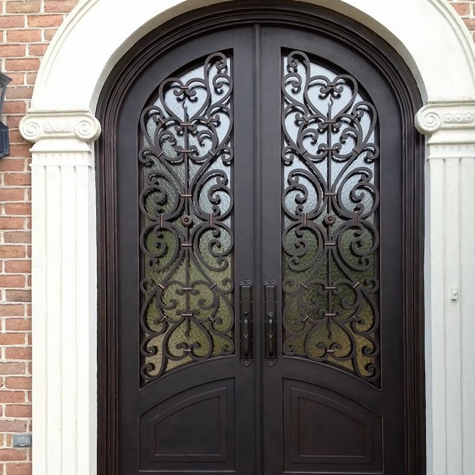 ประตูเหล็กฝรั่งเศสแบบหรูหราพร้อมแผงกระจกและโครงเหล็กสำหรับบ้าน สำนักงาน และการใช้งานเชิงพาณิชย์ เหล็กเส้นขนาด 14x14 มม.