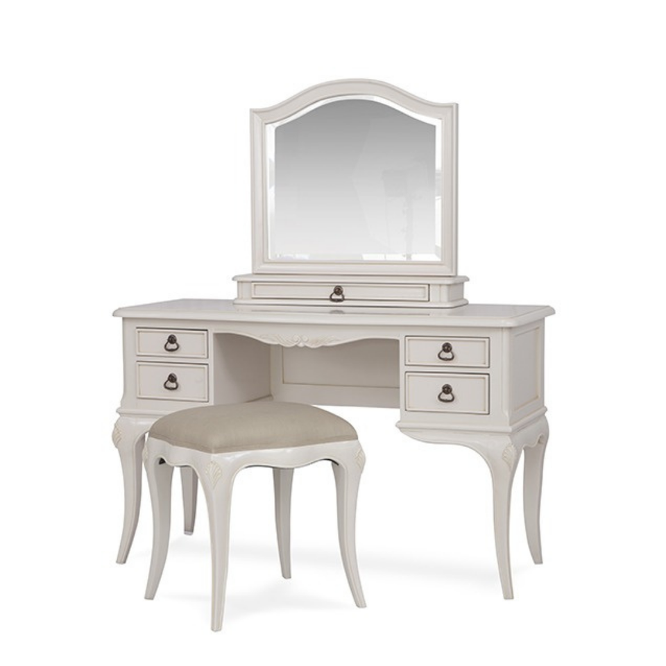 โต๊ะเครื่องแป้งทำจากไม้สไตล์วินเทจสไตล์ฝรั่งเศสหรูหราเฟอร์นิเจอร์โต๊ะเครื่องแป้งแต่งหน้าทำด้วยมือสีขาวมะฮอกกานี