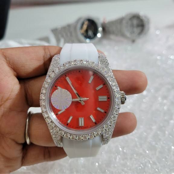 นาฬิกากลไกหรูหราสง่างามพร้อมดีไซน์คริสตัลเต็มรูปแบบสร้อยข้อมือเหล็กประดับเพชรที่ตกแต่งด้วยแฟชั่นที่ทันสมัย