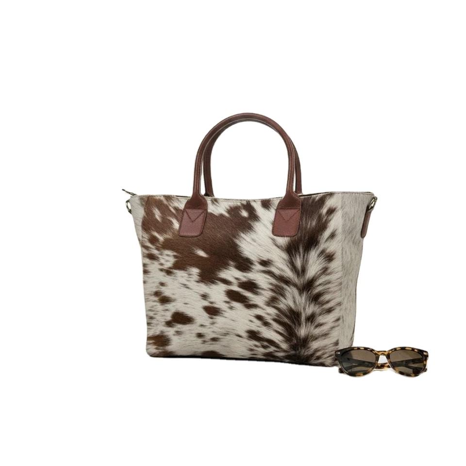 กระเป๋าโท้ทหนังวัวแท้ขนสัตว์ ดีไซน์หรูหรา แฟชั่นสำหรับผู้หญิง ฤดูร้อน แบบเปิดปิด สะพายไหล่ รุ่น LHTB-0035