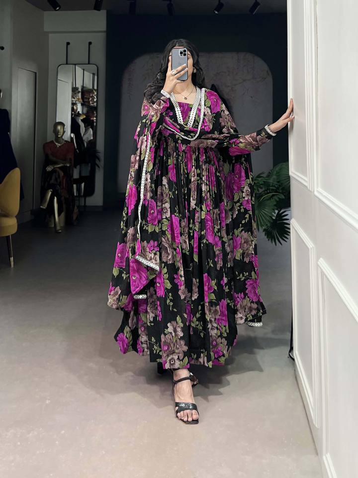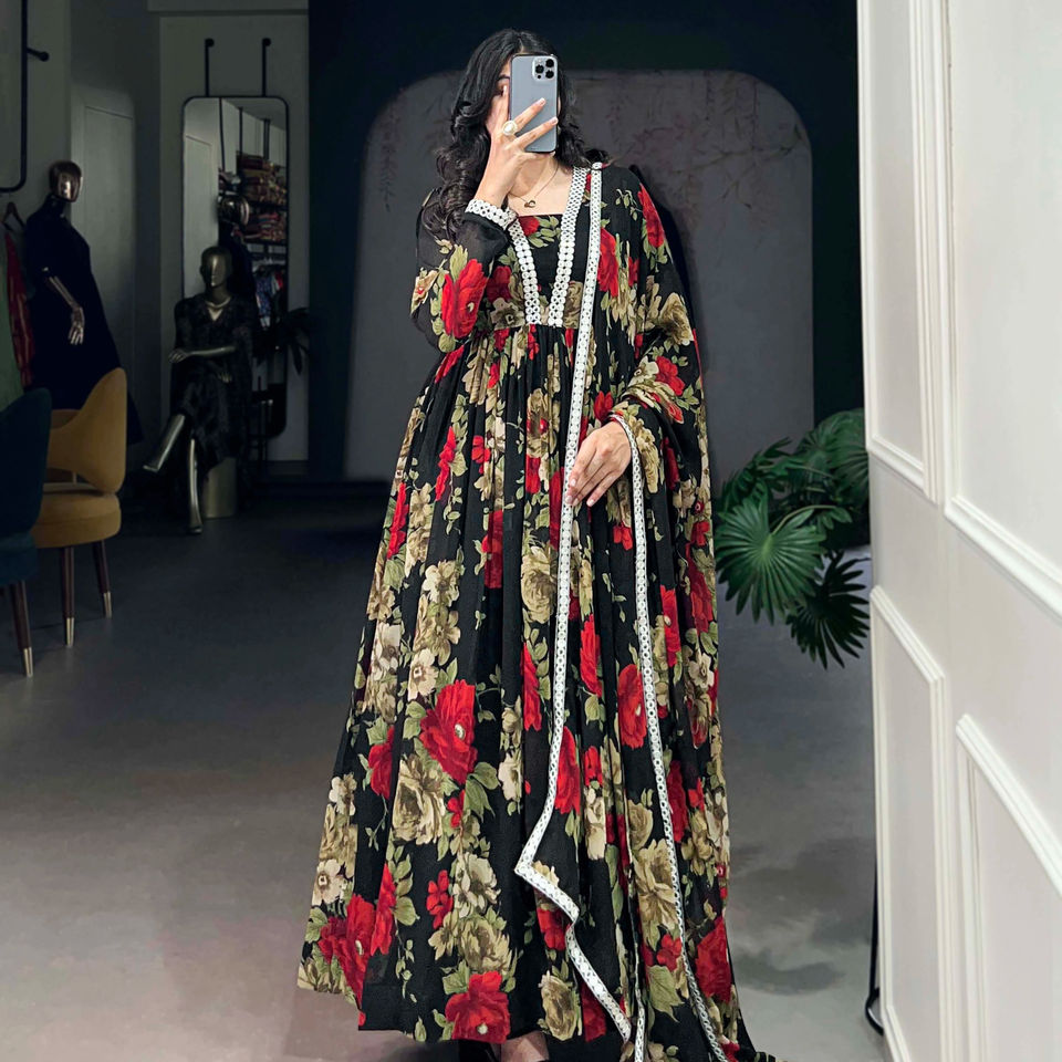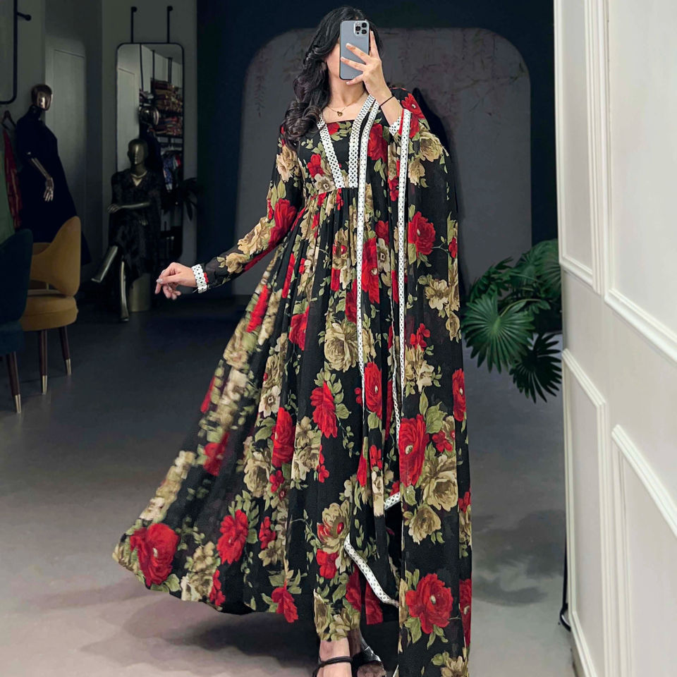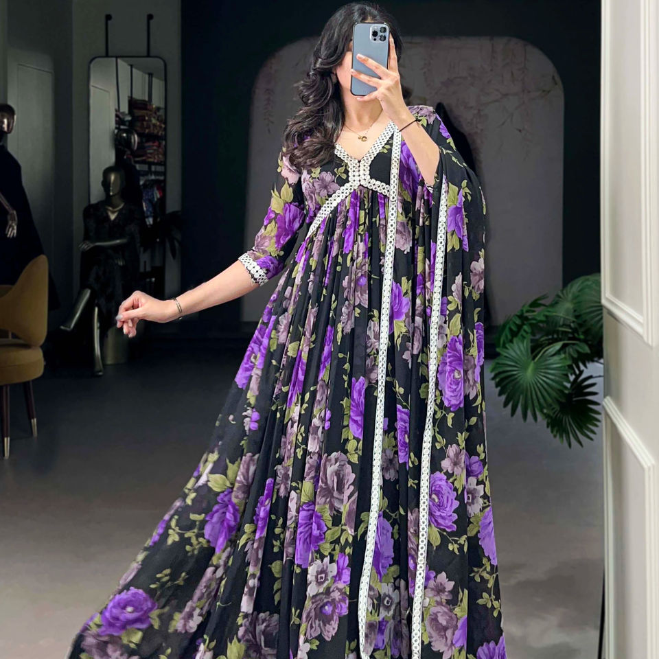 ชุดกาวน์ผ้าจอร์เจียทรงหรูหราพร้อมพิมพ์ลายดอกไม้ชุดผ้าไหมแขนเต็มลายลูกไม้พิมพ์ลายดอกไม้
