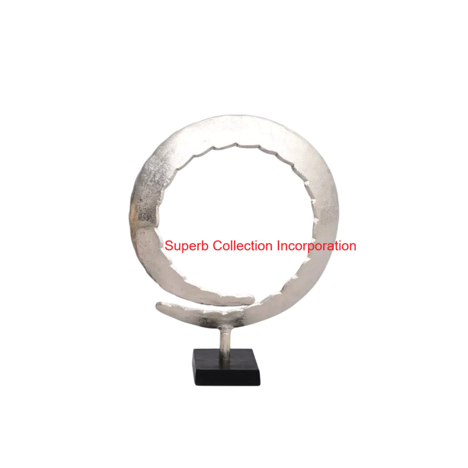 รูปปั้นโลหะทรงกลมสีทองปิดทองหรูหราพร้อมแหวนหินอ่อนสีขาวตั้งโต๊ะสำหรับห้องนั่งเล่นบ้านและสำนักงานที่หรูหรา