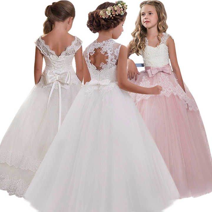 ชุดเดรสลูกไม้สำหรับงานเลี้ยงหรูหราสำหรับเด็กผู้หญิง ดีไซน์เว้าหลังประดับดอกไม้ สำหรับงานแต่งงาน
