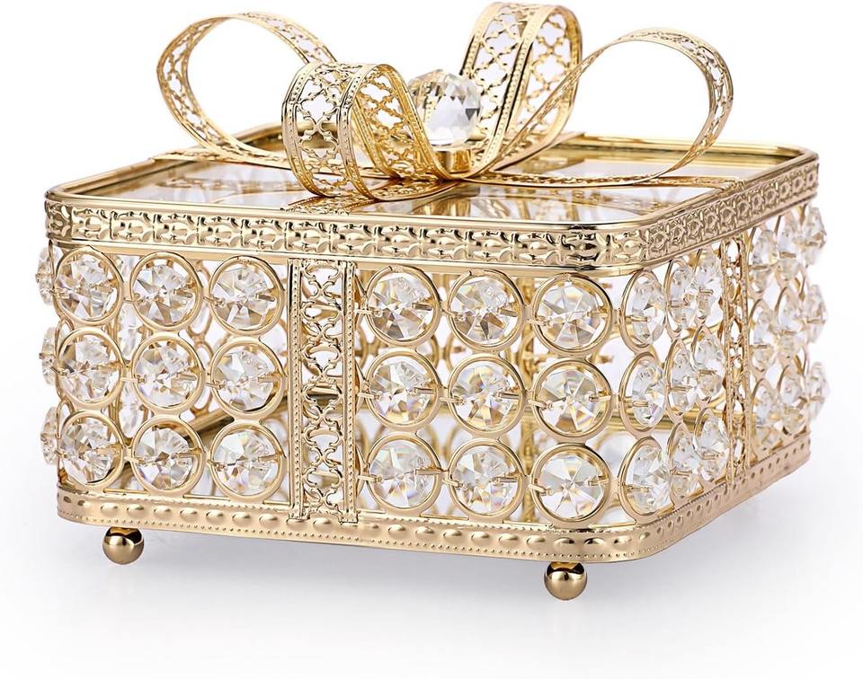 กล่องเก็บของแก้วดีไซน์หรูหราพร้อมกรอบโลหะสำหรับใส่เครื่องประดับและของที่ระลึก กล่องโชว์เครื่องประดับแบบใสพร้อมตกแต่งขอบโลหะสีทอง