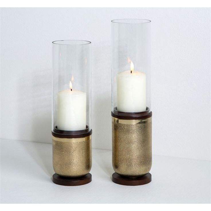 ชุดเชิงเทียนกันลมทรงหรูหราสีทองและไม้ พร้อมแก้วทรงกระบอกใส ตกแต่งโต๊ะอย่างมีระดับ