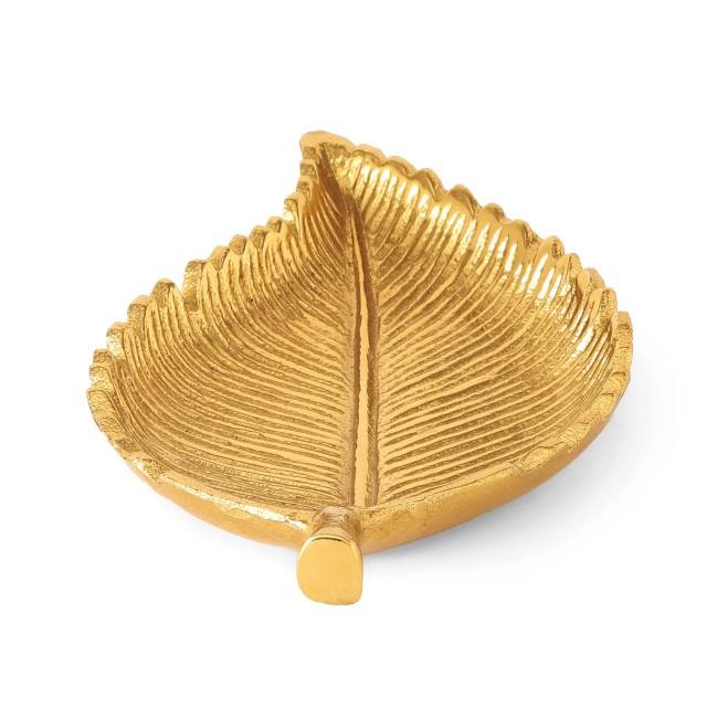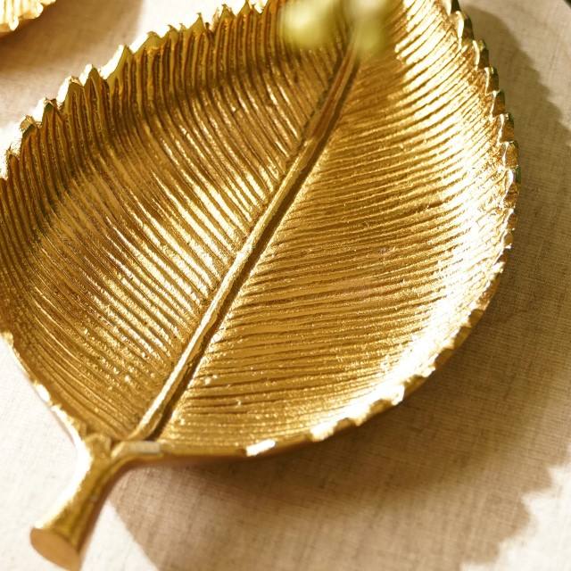 ถาดเสิร์ฟลายใบเบิร์ชสีทองหรูหรา ดีไซน์แบบอาร์ตเดโค ใช้ซ้ำได้ ถาดอะลูมิเนียมรูปใบเบิร์ชสุดหรู ของตกแต่งบ้าน