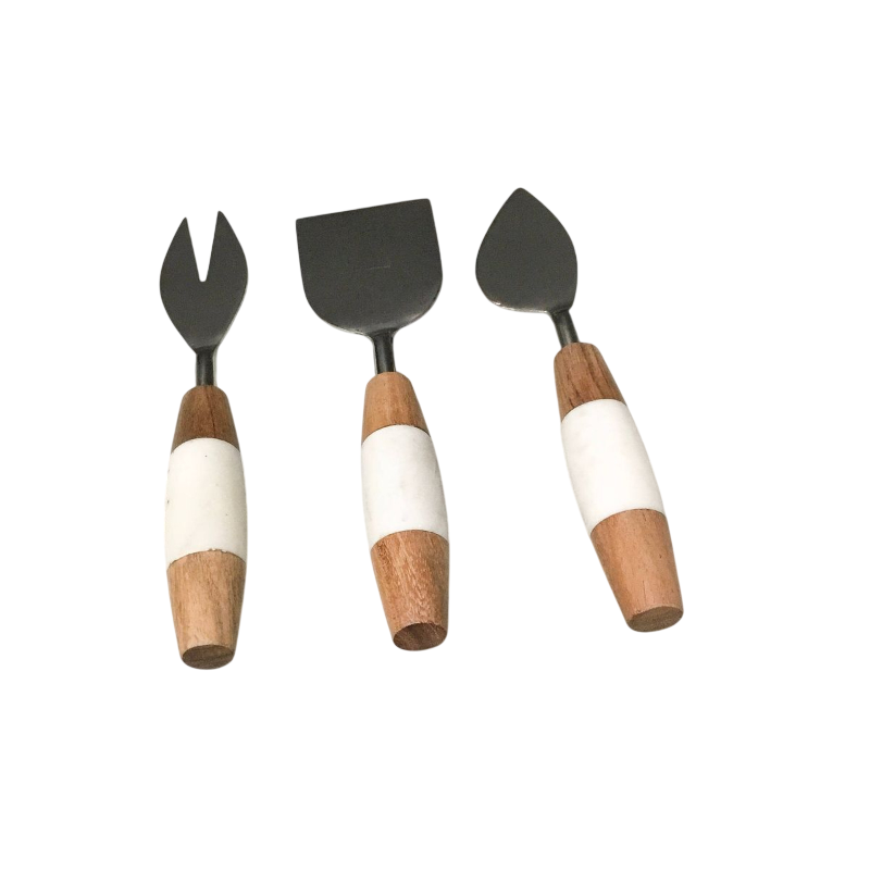 ชุดมีดชีสสีทองหรูหราพร้อมด้ามจับหินอ่อนสีขาว อุปกรณ์เสริมสำหรับเขียงสแตนเลส เหมาะสำหรับงานปาร์ตี้และเป็นของขวัญ