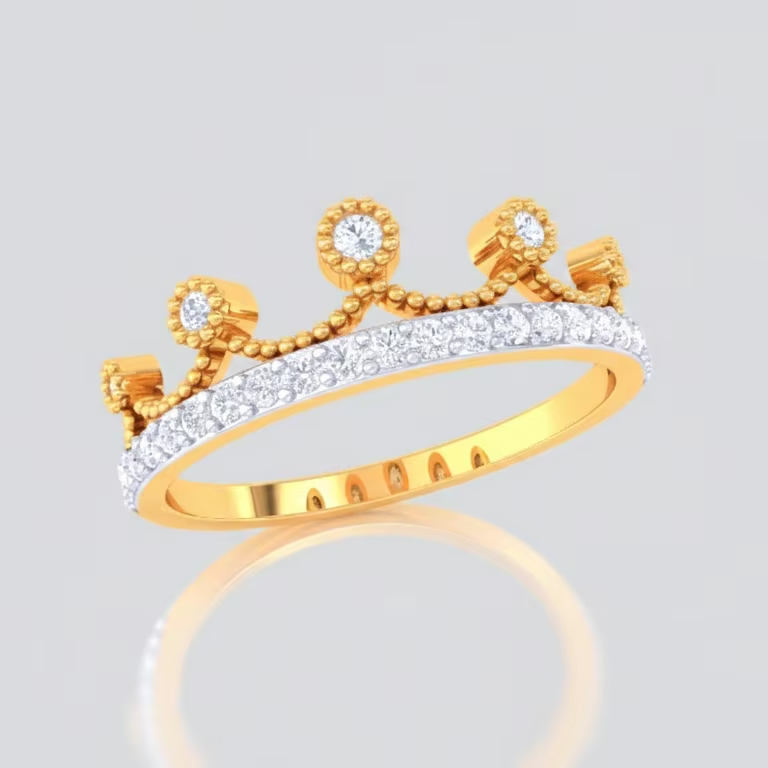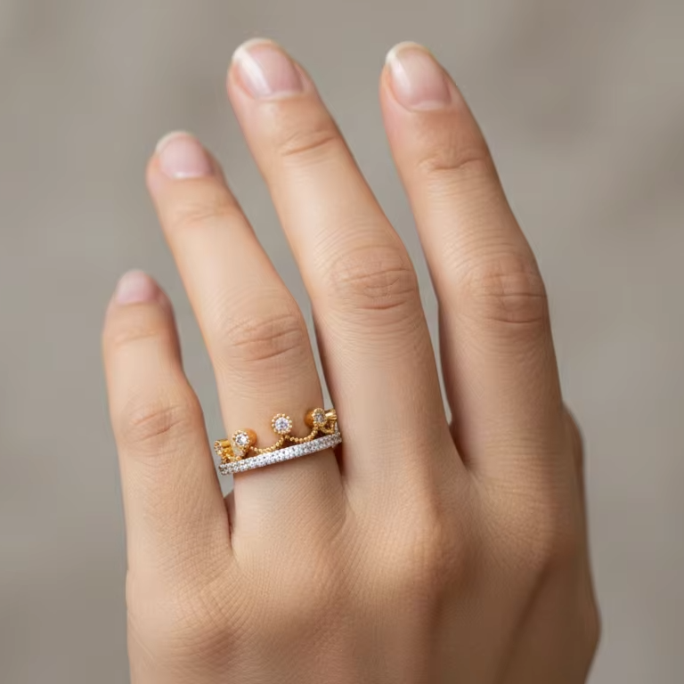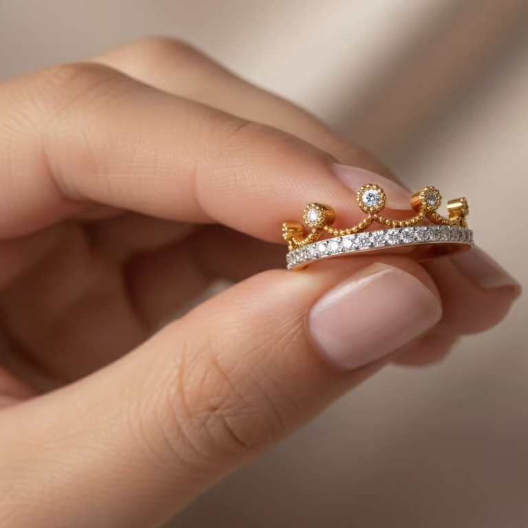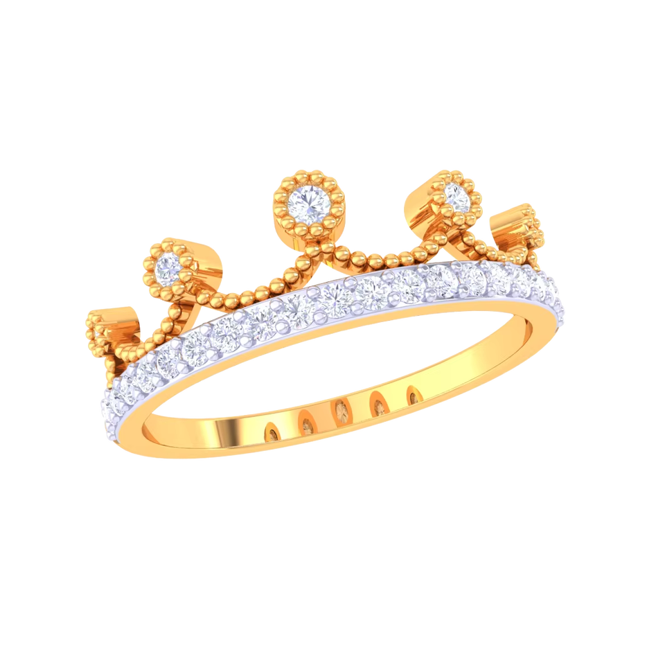 แหวนมงกุฎทองคำสุดหรูประดับเพชรทรงกลมเจียระไนอย่างวิจิตร - เครื่องประดับราชินีสำหรับงานแต่งงานและงานเลี้ยง