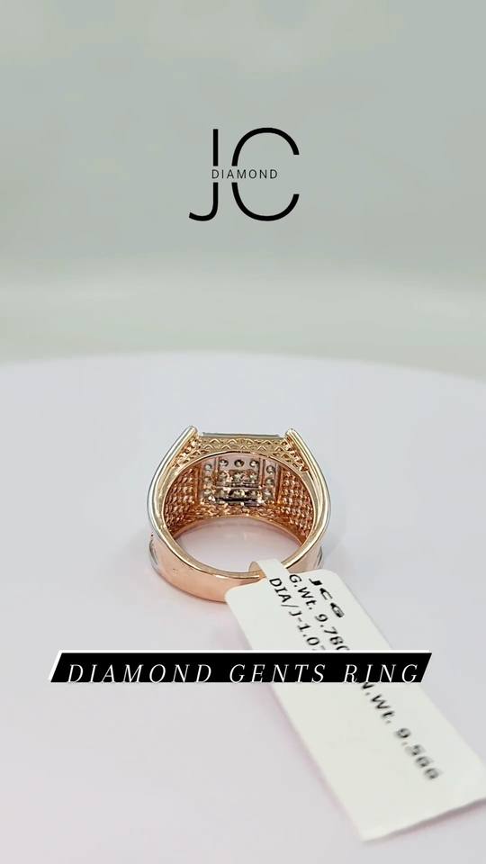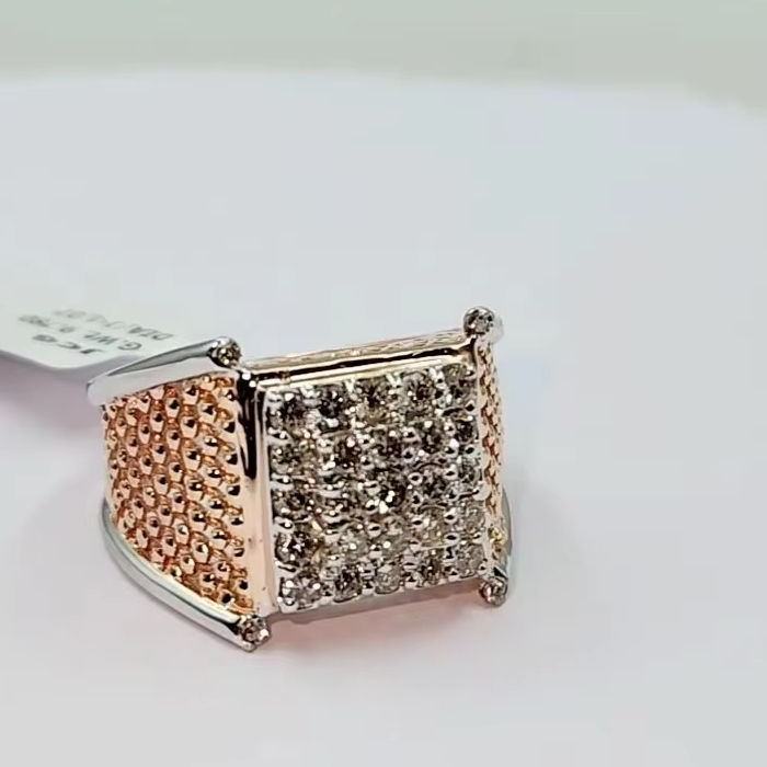 แหวนเพชรสีทองหรูหราสำหรับสุภาพบุรุษเพชรธรรมชาติสีโรสโกลด์สไตล์หรูหรา