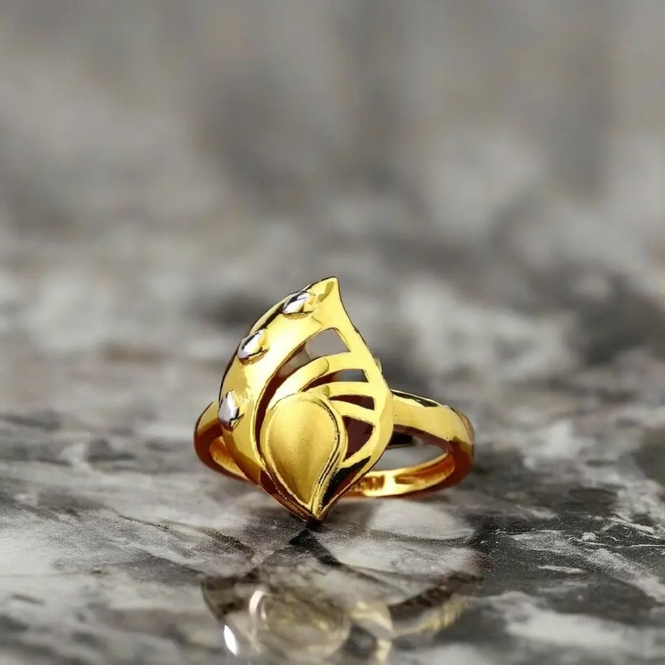 แหวนทองคำสองสีลายใบไม้ฉลุลายขัดเงาสูง ดีไซน์โดดเด่นไม่ซ้ำใคร เครื่องประดับสำหรับผู้หญิง แฟชั่นหรูหรา