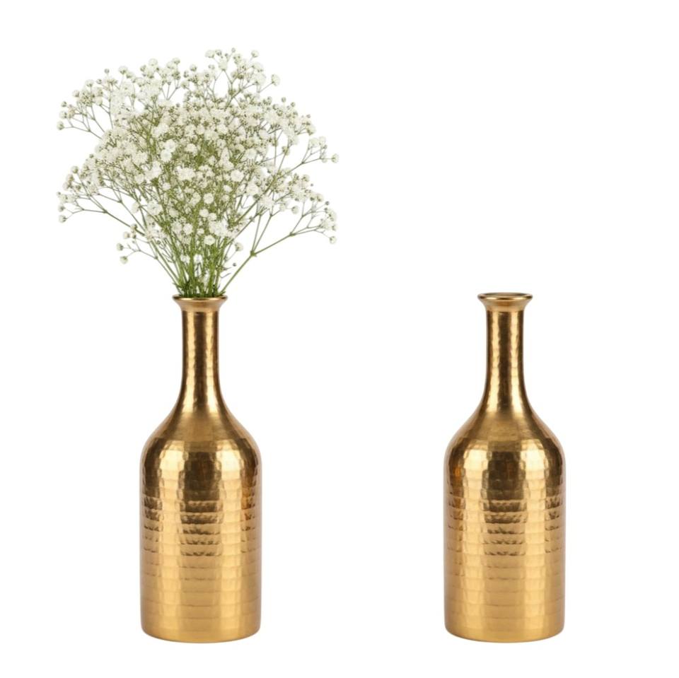 แจกันตกแต่งบนโต๊ะทำจากอะลูมิเนียมเคลือบทองอย่างหรูหรา แจกันดอกไม้โลหะสำหรับตกแต่งบ้านและห้องนั่งเล่นในราคาที่เข้าถึงได้