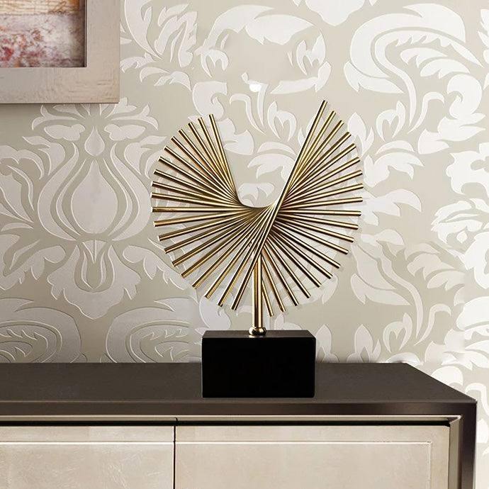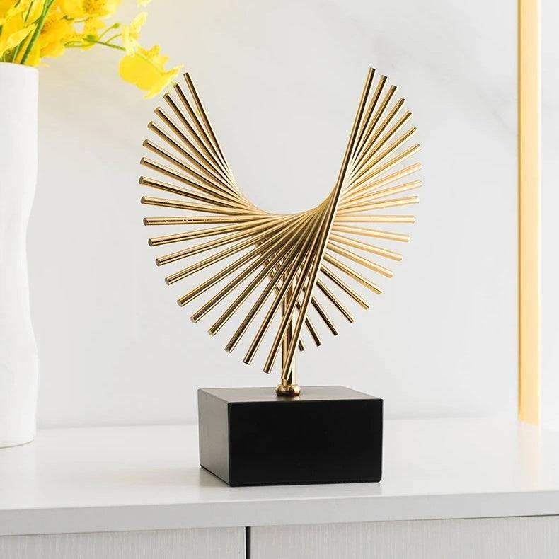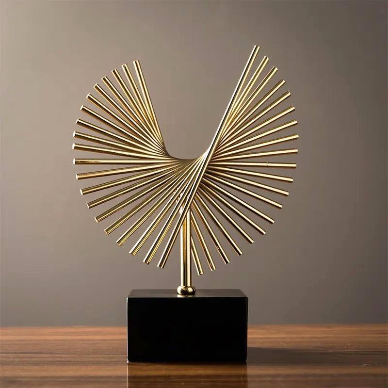 รูปปั้นโลหะรูปทรงเรขาคณิตสีทองหรูหราพร้อมฐานสีดำเหมาะสำหรับตกแต่งบ้านร่วมสมัยหรือตกแต่งโต๊ะทำงานจากอินเดีย
