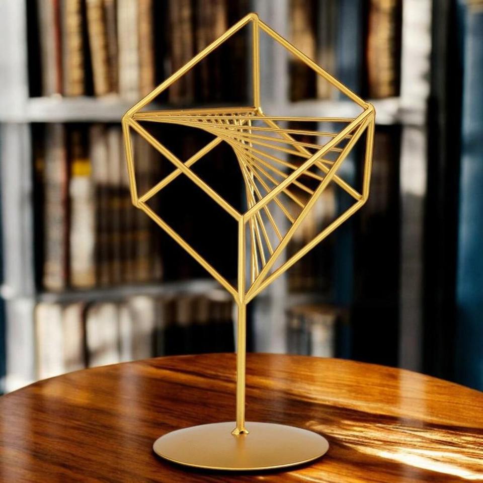 ประติมากรรมลวดทองรูปทรงเรขาคณิตสุดหรู ของตกแต่งบนโต๊ะสำหรับตกแต่งบ้าน สำนักงาน โต๊ะทำงาน และชั้นวางของ จากอินเดีย