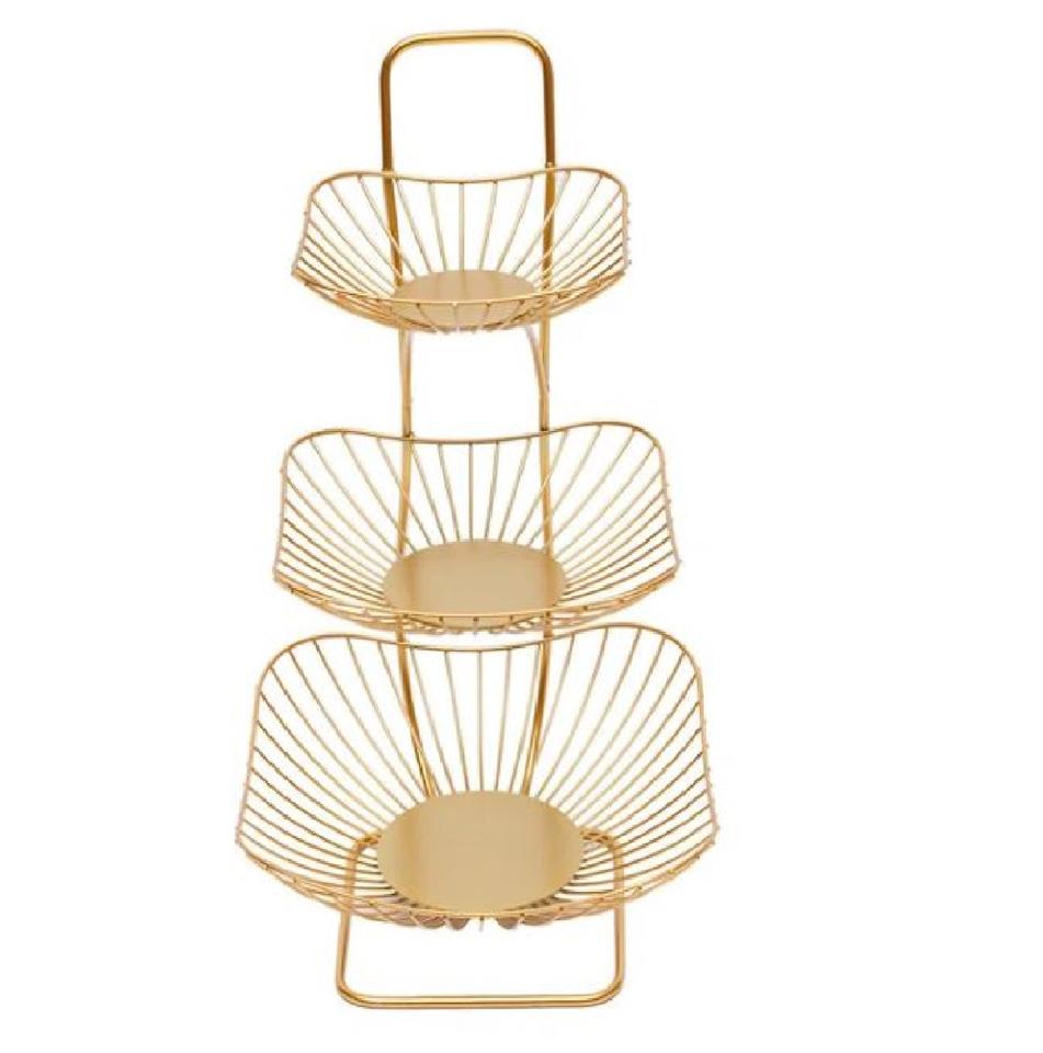 ชั้นวางจัดเก็บของแบบสามชั้นลวดตาข่ายสีทองหรูหราเหมาะสำหรับเครื่องครัวและอุปกรณ์ในบ้าน