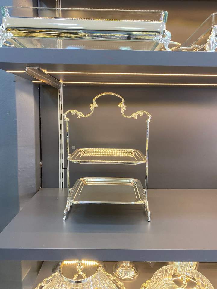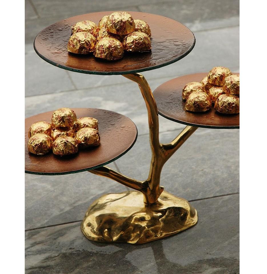 ถาดวางช็อกโกแลตทรงกิ่งไม้ผีเสื้อโลหะสีทองหรูหรา พร้อมฐานตั้งโชว์หลายระดับ